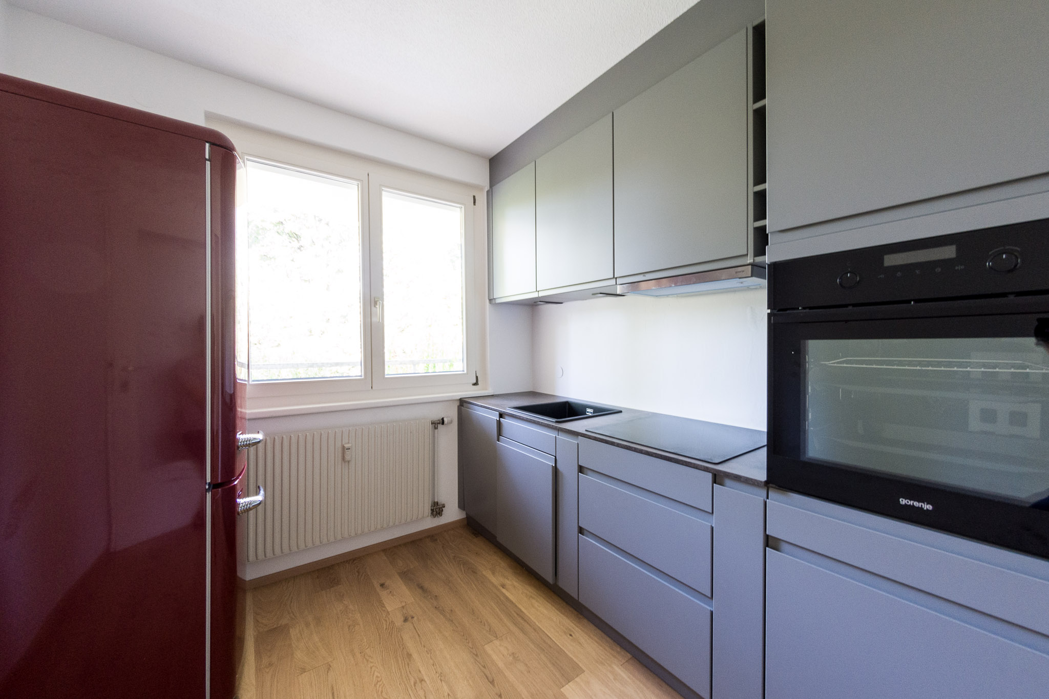 Feldkirch Tosters – eingebettet zwischen Schellenberg und Ardetzenberg – hier, in einem der wohl attraktivsten Wohn-Bezirke in der Montfortstadt, befindet sich unser jüngstes Kauf-Objekt: Die großzügige, helle und ganz neu renovierte 3-Zimmer-Wohnung (Schlafzimmer, Wohnzimmer, Kinderzimmer/Gästezimmer/Büro, Küche und Badezimmer mit separatem WC) bietet eine Fläche von knapp 70 Quadratmetern, dazu gibt´s einen gemütlichen Balkon, einen Abstellraum, ein Kellerabteil und einen Auto-Abstellplatz. Der Blick aus allen Fenstern und dem Balkon richtet sich ins Grüne bzw. auf die herrlichen Bäume des Grundstücks – die Wohnung ist also nahezu uneinsehbar. Die funkelnd neue Küche mit Gorenje-Geräten und der wunderschöne Parkettboden runden das Bild hochqualitativ ab.